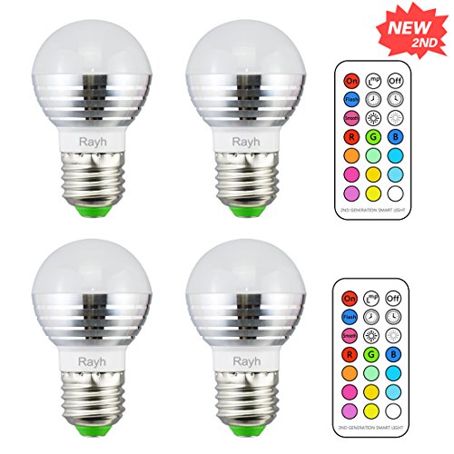 Rayh E26 Color Changing Light Bulbs 3W Colored Light Bulbs with Remote Control for Home Decoration / Bar / Party / KTV Mood Ambiance Lighting (Pack of 4)