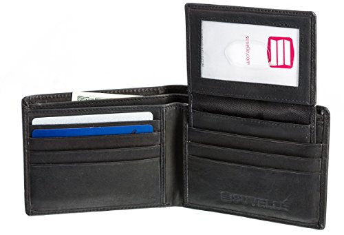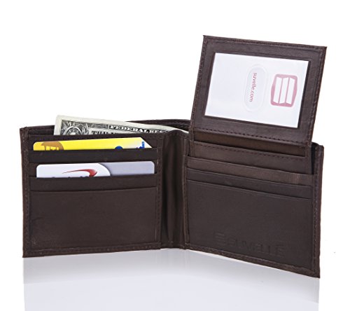 -. Feature : MADE OF SOFT RICH GENUINE LEATHER that is stylish, modern and timeless The Suvelle wallet offers fashion and function ideal for everyday and travel use / ORGANIZED INTERIOR Divided bill section helps split larger bills from smaller ones easily and to stash cash, checks, and receipts, 7 cards slots 4 on one side of the fold and 3 on the other side of the fold ideal to hold all your credit cards, debit cards, insurance cards, and rewards cards, 2 slip pockets one on each side behind the card slots are ideal for photos, ATM slips or receipts / EASILY SHOW YOUR ID WHEN NEEDED and easily remove ID if asked with the removable flip up ID flap, features a clear ID window with a thumb-slide ensures to get the ID in and out with ease with 2 additional card slots on the ID flap / SLIM DESIGN MAKES IT COMFORTABLE TO CARRY IN ANY POCKET Embossed Suvelle logo at the front offers a subtle touch of brand identification and a single- needle stitching featuring around the perimeter is for the finishing touch / A CLASSIC MEN'S WALLET STYLE Available in: Black leather and Brown leather, Approximate Dimensions 4 ½ W X 3 ½ L when closed and empty, 9 W X 3 ½ L when open and empty