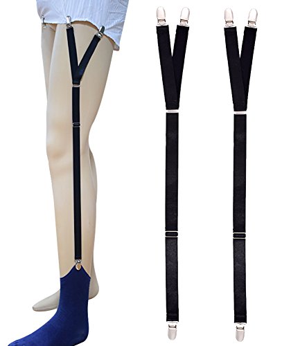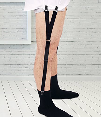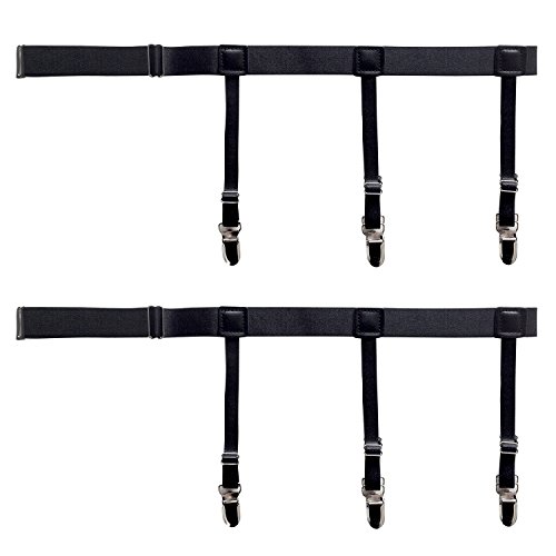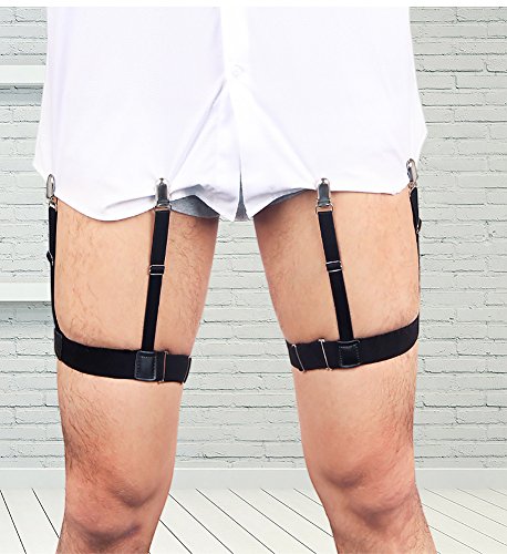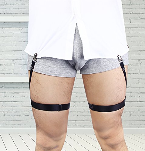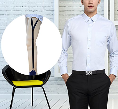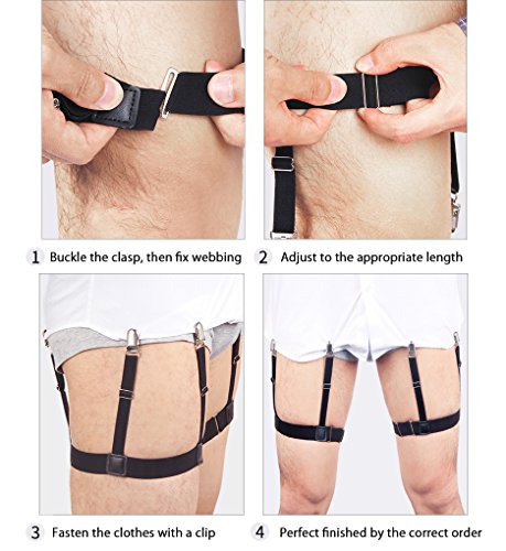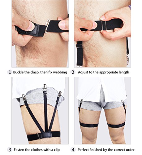 About the product - Our shirt garters are made from high elastic nylon, high elastic, flexibility and skin-friendly. You can rest your heart to wear them. - Metal clamps and each garter comes with 3 buckles, which is no-slip, keeping your shirt straight and firm. - This shirt holder is going around the thigh and adjustable, you can adjust according to your leg size, convenient and easy to use. - Our shirt stay is your best choice for keeping your shirt neat and smooth. Feel confident knowing that you have a clean fit look. Let you look even slimmer and leaner. Stop having a wrinkled sloppy look.