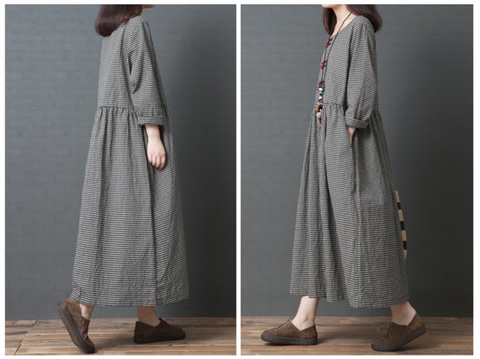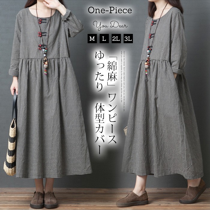 ・胸元に特徴的なボタンデザインのワンピースが新入荷♪・ゆったりとしたシルエットが気になる所をカバーしてくれるデザイン☆・カジュアルなイメージのチェック柄ですが、ほどよく広がるフレアシルエットと長めの丈のおかげで大人っぽく着こなせるのも魅力です♪★キーワード検索:ロングワンピース チェック柄 綿麻混ワンピース リネンワンピース 秋ワンピース ロング丈 マキシ丈 ゆったり マキシワンピース コットンリネンワンピース 体型カバー チェック柄 マキシワンピ 大きいサイズ 着痩せ 30代 40代 50代 60代 着痩せ お洒落 おしゃれ オシャレ 長袖 チュニックワンピース ゆるっと ママワンピース 母親 ママ ワンピース★ご注意:初めのうち色落ちする事がありますので他のものとは別にお洗いください。・塩素系漂白剤は使用しないでください。★素材:綿麻・ボリエステル★サイズ(CM):M:バスト100 肩幅37 袖丈53 着丈113L:バスト102 肩幅38 袖丈54 着丈114XL:バスト104 肩幅39 袖丈55 着丈1142XL:バスト106 肩幅39 袖丈55 着丈114