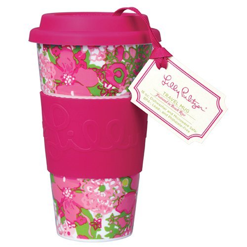 -. Title : Lilly Pulitzer Travel Mug, Beach Rose - Kitchen Drinkware Cup Glass 143001-LGPLP