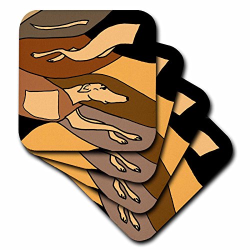 3dRose cst_195263_3 Fun Greyhound Racing Dog Art Abstract Ceramic Tile Coasters, (Set of 4)