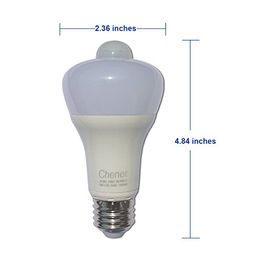 Chener A19 LED Motion Sensor Light Bulb 9W E26 E27 Auto Switch equivalent to 75W incandescent Lamp Warm White 2700K