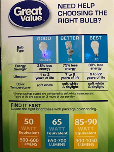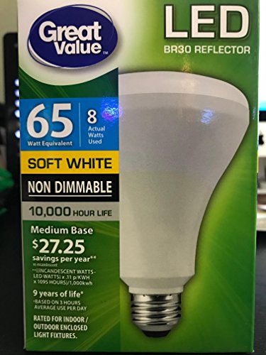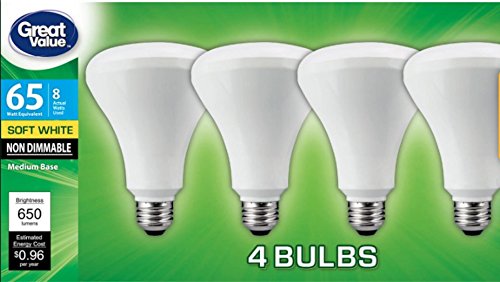 Great Value LED Light Bulb 4-Pack, 8W (65W Equivalent) BR30, Soft White