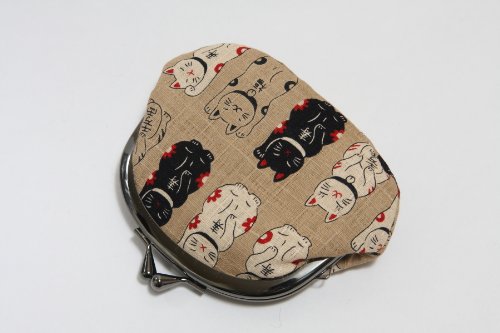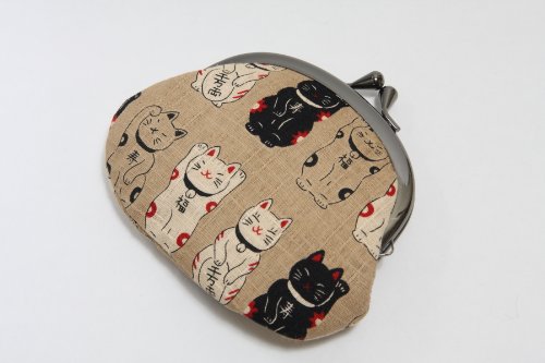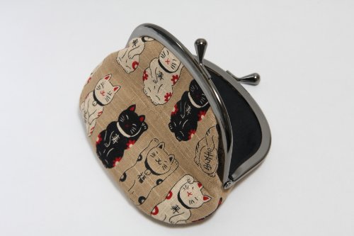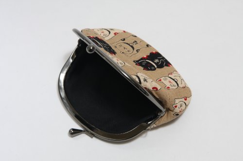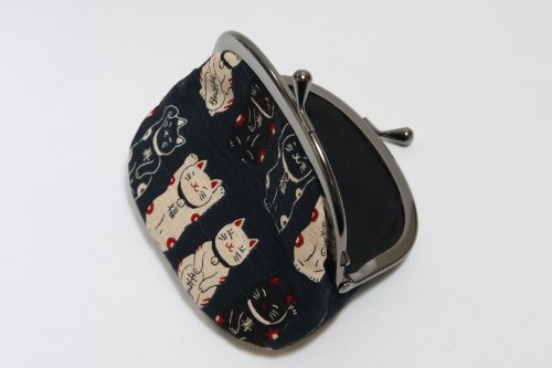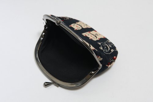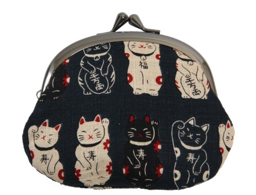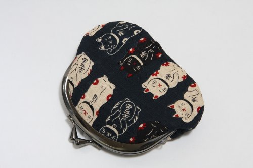 -. Feature : 招き猫柄のがま口財布です。 / サイズ:約 高さ9cm 幅12cm / 素材:綿 / 京都職人による手作りです。 / 生地の裁断部分によって柄の出方が変わります。