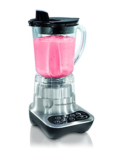With plenty of power crush ice and blend fruits and the no mess pouring spout, the Hamilton Beach Smoothie Smart Blender is just what you need to a create your very own smoothies. The one-touch blending and Wave Action features make it easy to create perfectly blended fruit drinks. The jar, lid and blades are dishwasher safe and the base can be wiped down for quick and easy cleanup.Feature