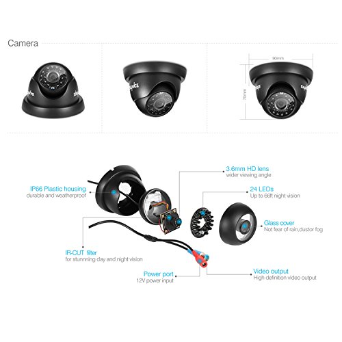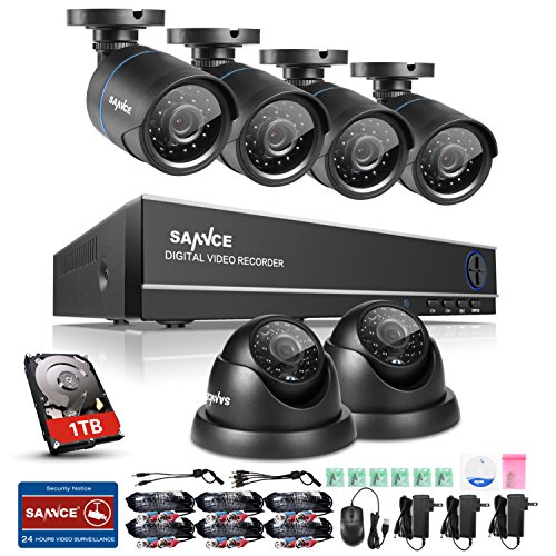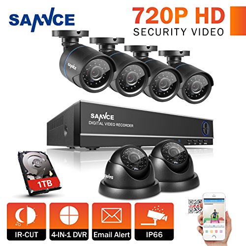 SANNCE 8CH 1080N Security Camera System CCTV DVR with 1TB Hard Drive and (6) 720P Night Vision Surveillance Cameras, IP66 Weatherproof , P2P Technology/E-Cloud Service, QR Code Scan Remote Access