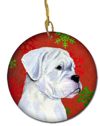 Caroline's Treasures SS4716-CO1 Boxer Red Snowflakes Holiday Christmas Ceramic Ornament, Multicolor