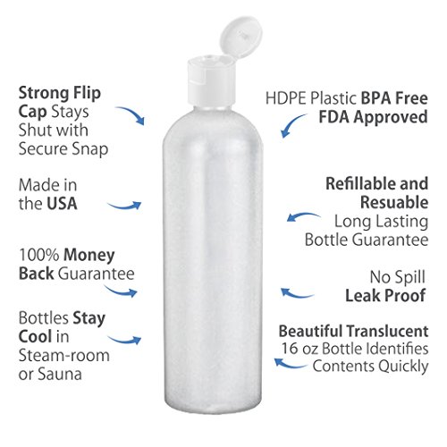 SAVES YOU MONEY AND HASSLE 16 ounce hdpe big bottle that don't leak. Durable food safe premium hdpe plastic is ideal for oils, toners, water.
