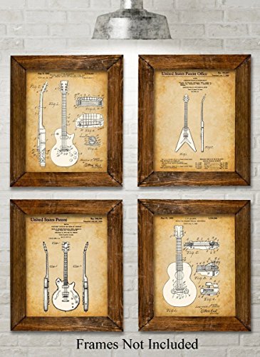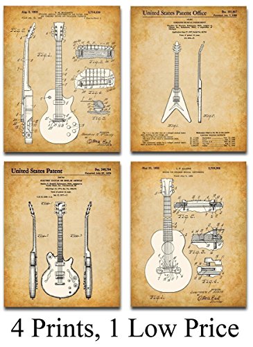 Bring a little whimsy to your lounge or music room. These four prints show patents filed between 1876 and 1942. The original patent artwork has been reinterpreted by award winning artist Norm Lanier.