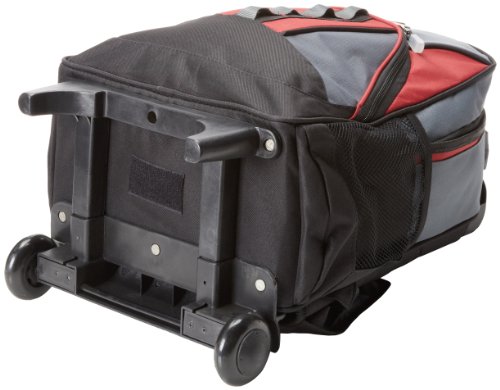 -. Binding : Apparel -. Brand : CalPak -. ClothingSize : One Size -. Color : Red -. Department : unisex-adult -. Feature : Rolling backpack / Telescopic handle / Large main compartment / Front organizer pocket / 17x12.5x8 / Padded Wheel Cover For Backpack Conversion / Side Mesh Pockets / Zippered front pocket / Inline skate ball-bearing wheels / Retractable push-button handle system -. Label : California Pak -. Manufacturer : California Pak -. Model : RBK2017 -. NumberOfItems : 1 -. PackageQuantity : 1 -. ProductGroup : Apparel -. ProductTypeName : LUGGAGE -. Publisher : California Pak -. Size : One Size -. Studio : California Pak -. Title : CalPak Grand Stand Unisex 17-inch Lightweight Rolling Sport Backpack