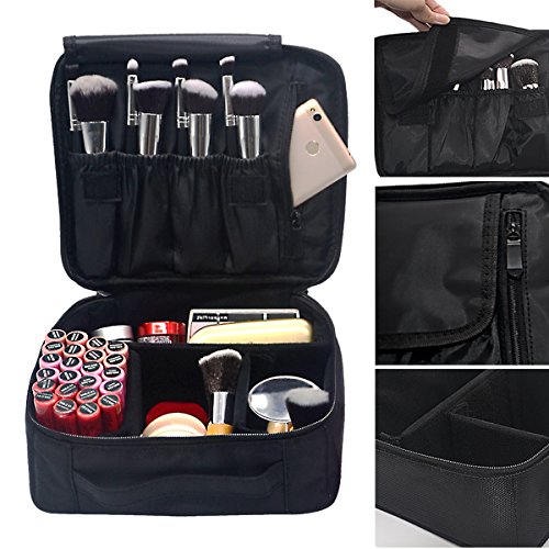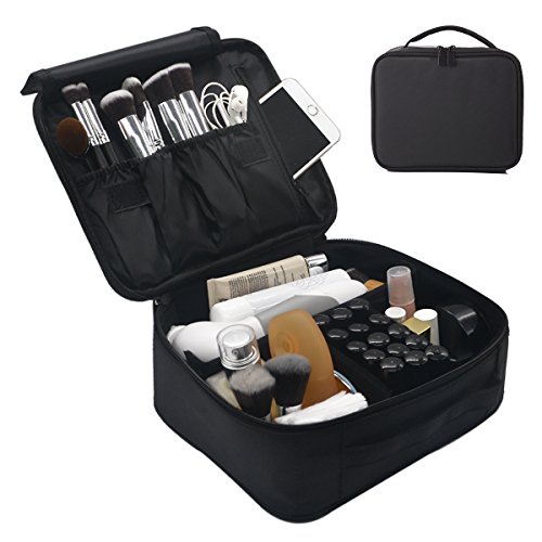 Lmeison Traveling Makeup Bag Toiletry Bag for Women, 9.6'' Portable Cosmetic Bag with Adjustable Dividers, for Cosmetics, Makeup Brush Set, Jewelry, Toiletry and Traveling Accessories