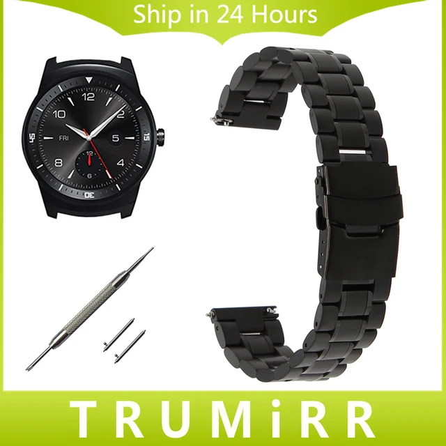 | [해외]22 미리메터 스테인레스 스틸 스트랩 + 빠른 릴리스 핀 lg g watch W100/R W110/도시적인 W150 안전 버클 밴드 손목 벨트 팔찌 |