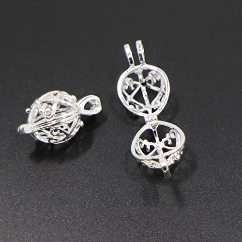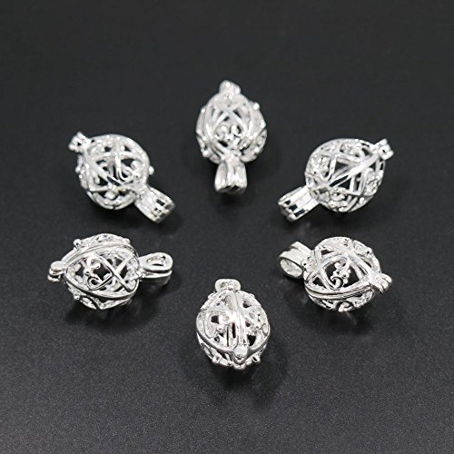 10pcs Silver Plated Hollow Cage Locket Pendant,Copper Beads Cage Locket Essential Oil Diffuser Pendant Charms