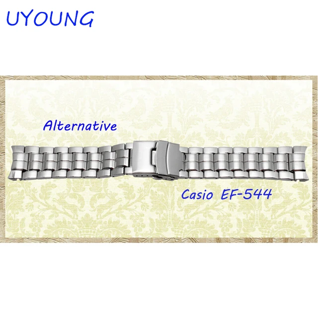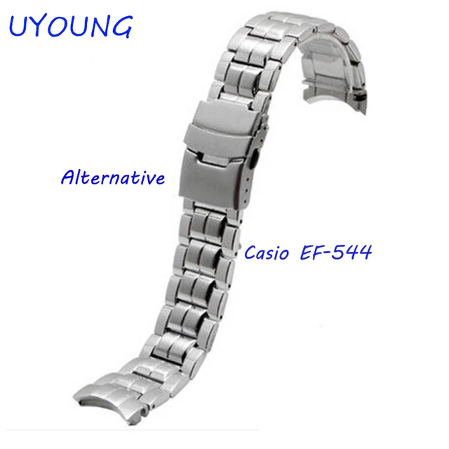 Uyoung 손목 casio ef-544 단단한 스테인레스 스틸 시계 밴드 팔찌 시계 액세서리 실버 스트랩
