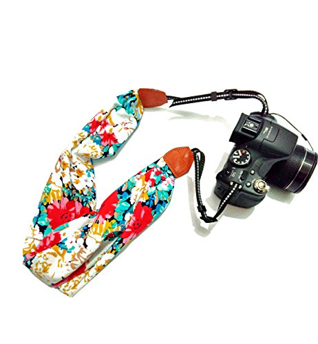 Floral pattern scarf dslr camera strap, Multi layer adjustable straps for around the neck or cross body style, Comfortable Neckpad with ultra-soft fabric surface against your skin