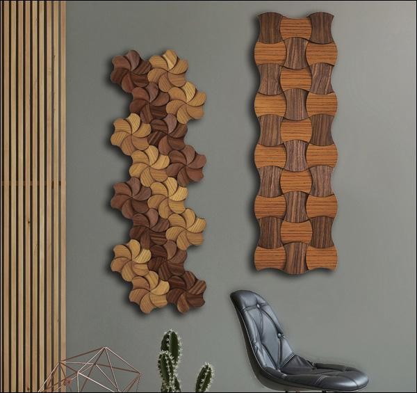 天然木とMDFを細かくカットし、精密に組み合わせて創り出したウォールアートです。
