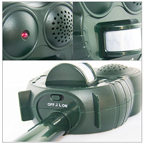 - 【HOW It Works】 PIR sensor begin to work once animal walk appeared within 30ft then LED lights flashand ultrasonic speaker sounds for 5 seconds