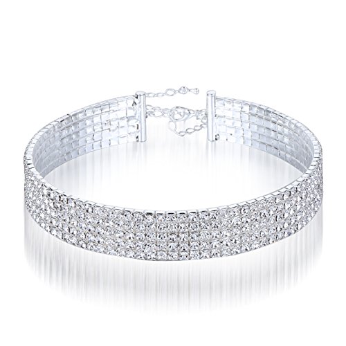 Product:BESPMOSP BESPMOSP Silver Plated Crystal Rhinestone Choker 3/4/5/8 Rows Women's Diamond Collar Necklace Wedding Party
