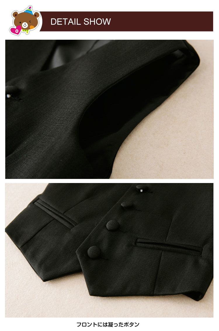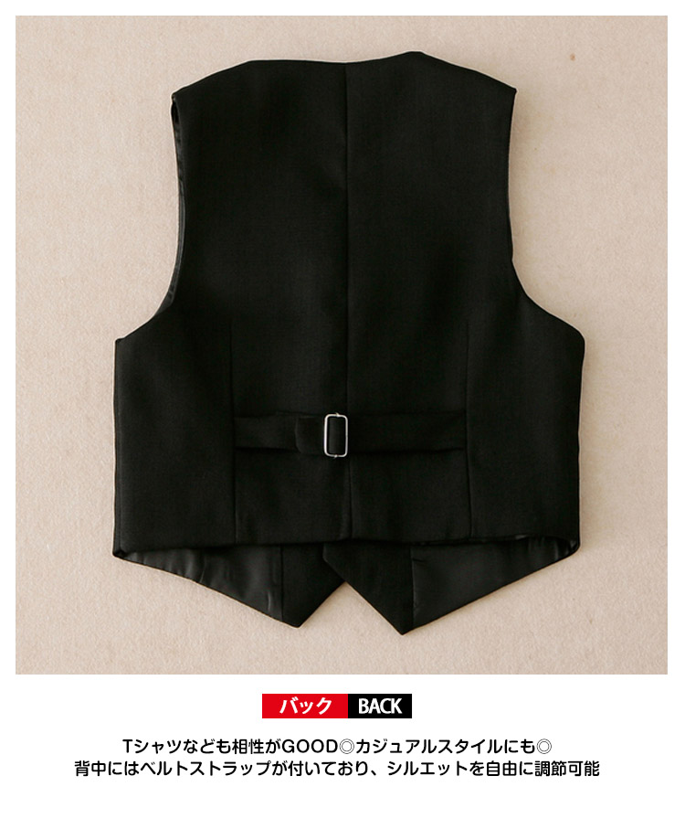 | 上品な素材で高級感漂う大人気の子供ジレベスト入学式、結婚式、発表会などフォーマルシーンはもちろんTシャツなども相性がGOOD◎カジュアルスタイルにも◎背中にはベルトストラップが付いており、シルエットを自由に調節可能 | |