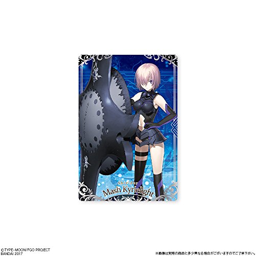 全25種(うちシークレット1種)よりランダムに封入。人気アプリ「Fate/Grand Order」のカード付ウエハースです。表面はマシュやジャンヌ達のイラストを大きく配置し、全レアリティにメタリックに輝く印刷を採用。さらに最高レアは、ホロ加工入り。裏面はスキル、パラメータ、紹介文等の情報を掲載した、コレクション要素の強いデザインに仕上げています。
