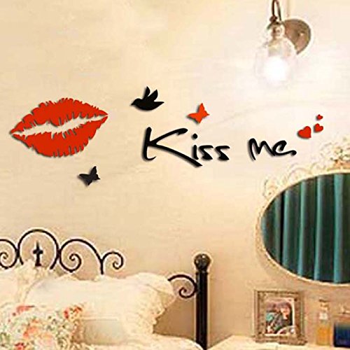 -. Title : Amaonm® 3d Plastic Marilyn Monroe Red Lips with Words Kiss Me and Flying Bird 3d Butterfly Heart Wall Decal Sticker Murals Home Art Decor for Home Decorations