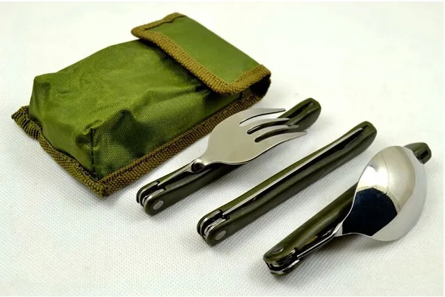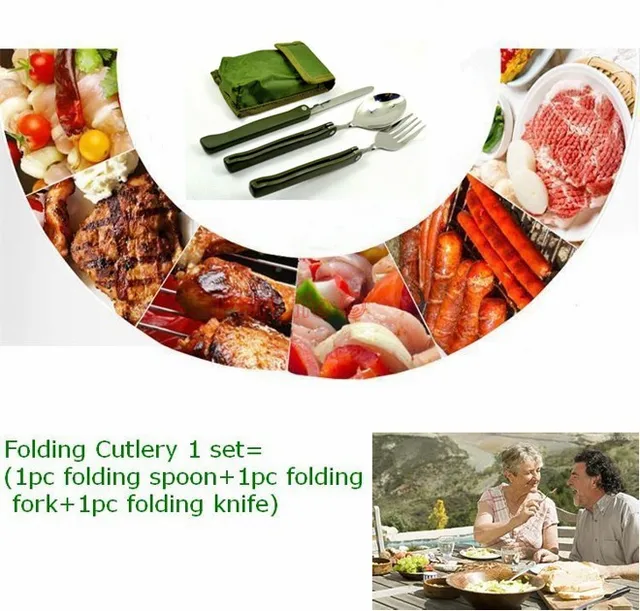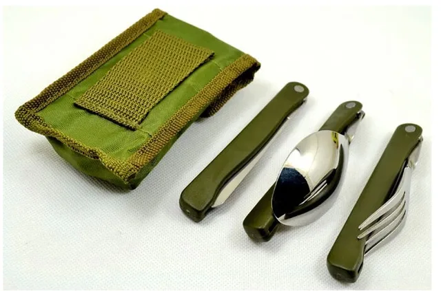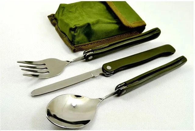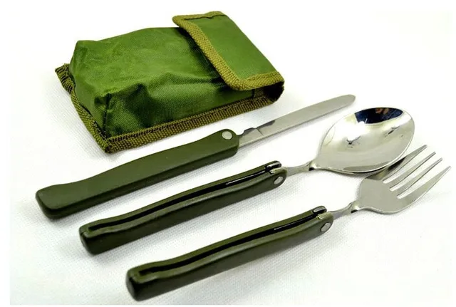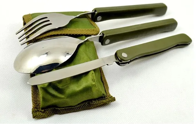 | [해외] 식기 군대 행진 접이식 칼 포크 숟가락 휴대용 야외 캠핑 세 조각 칼 다기능 접이식 |