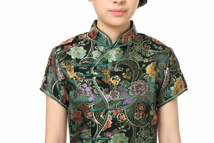 此款旗袍扣子全是人工手缝的,可能不是很牢固,买家活动用过试穿后,
