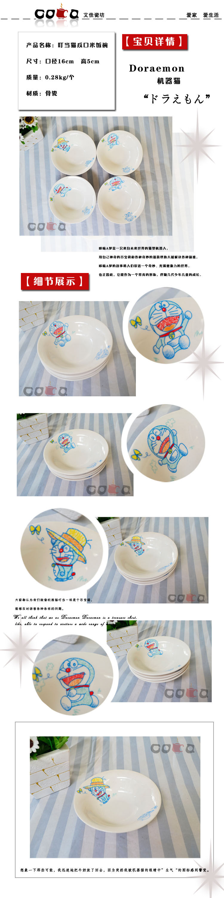 机器猫 哆啦A梦 小叮当环保卡通骨瓷陶瓷米饭碗创意汤碗  陶瓷