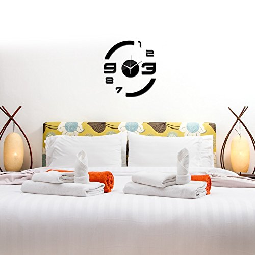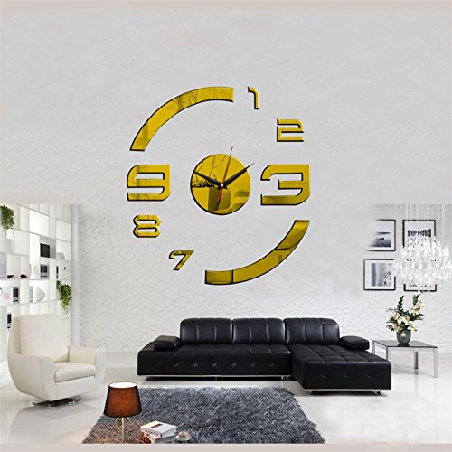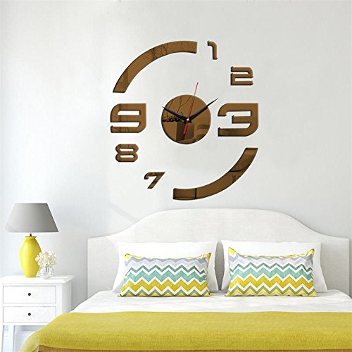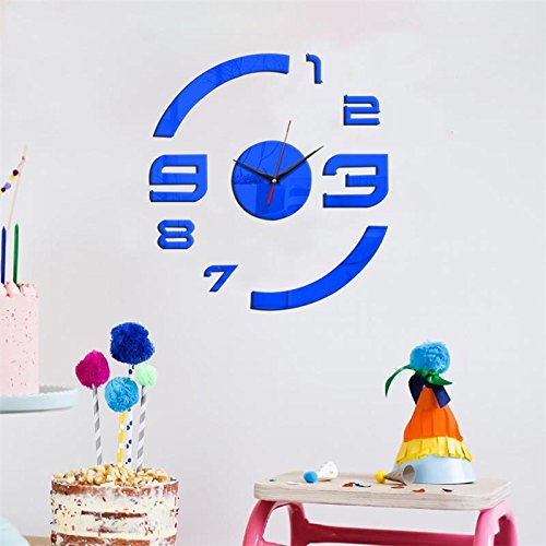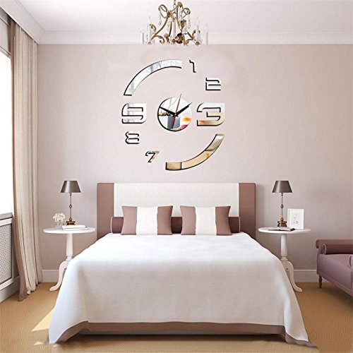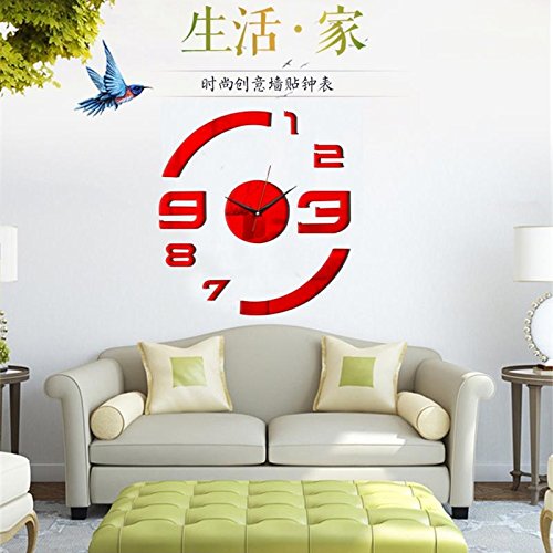 DIY Patterns Creative Mirror Surface Wall Clocks, Living Room Bedroom Wall Decorative Wall Sticker Watches (Item02-Red)