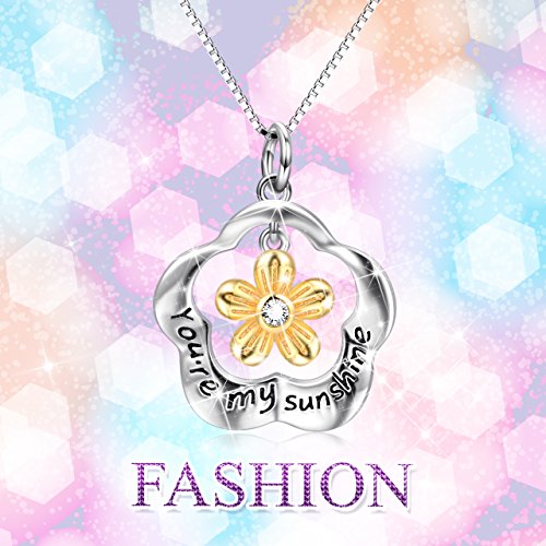 18K Gold Plated Five Star Women Flower Jewelry,You Are My Sunshine Engraved Daisy Flower Pendant.Nice Two Tone Necklaces