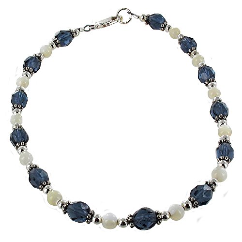 -. Binding : Jewelry -. Brand : Timeless-Treasures -. Department : womens -. Feature : Available Lengths: 9" - 12" / 100% Satisfaction Guaranteed / Ships from USA / FREE GIFT BAG WITH EVERY ORDER ! (Timeless Treasures Imprinted) -. ProductGroup : Jewelry -. ProductTypeName : FASHIONNECKLACEBRACELETANKLET -. Title : Blue Czech Fire Polished Glass, Mother of Pearl & Sterling Silver Ladies Beaded Anklet with Daisies