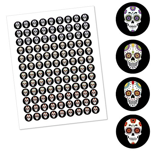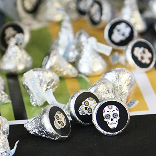 Day Of The Dead - Halloween Sugar Skull Party Round Candy Sticker Favors - Labels Fit Hershey’s Kisses (1 sheet of 108)