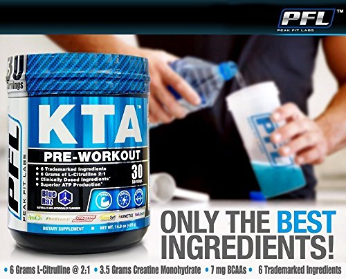 KTA Pre Workout, 6 Trademarked Ingredients, 6 Grams L-Citrulline, 3.5 Grams Creatine, 7mg BCAA's, Blue Raz Nitric Oxide, Creatine Sports...