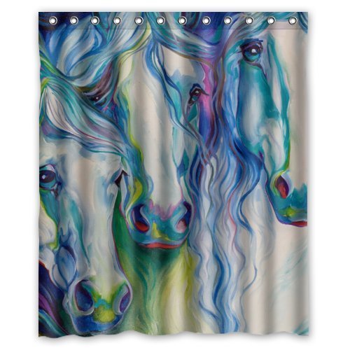 Eco-friendly Abstract Watercolor Horse Art Shower Curtain Waterproof Bathroom Curtain Liner with Hook 60" x 72"