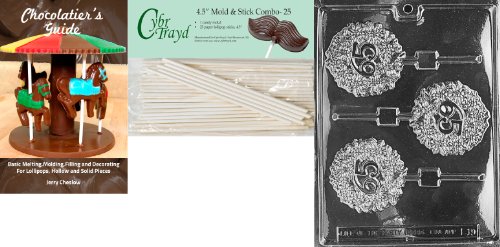 Cybrtrayd '65th Lolly' Letters and Numbers Chocolate Candy Mold with 25 4.5-Inch Lollipop Sticks and Chocolatier's Guide