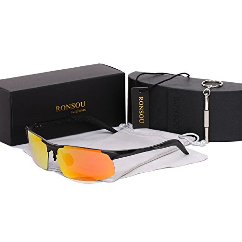 【EXTRMELY LIGHT-WEIGHT】-- RONSOU sunglasses frame use of advanced high-quality materials ,aluminium-magnesium alloy , Its hardness is several times of other traditional plastic sunglasses , weights only 25 g , but they are scratch resistant, durable and unbreakable.The Sunglasses are Fashion Cool design;Target User for Fishing, Golf, Cycling, Running, Driver Sunglasses and all Active Outdoor lifestyles!