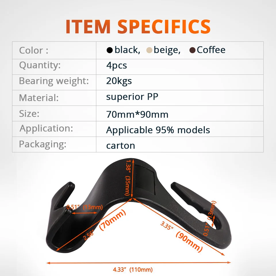 Type:4Pcs/Set Universal Auto fastener & clip Car Seat Back Holder Hook
