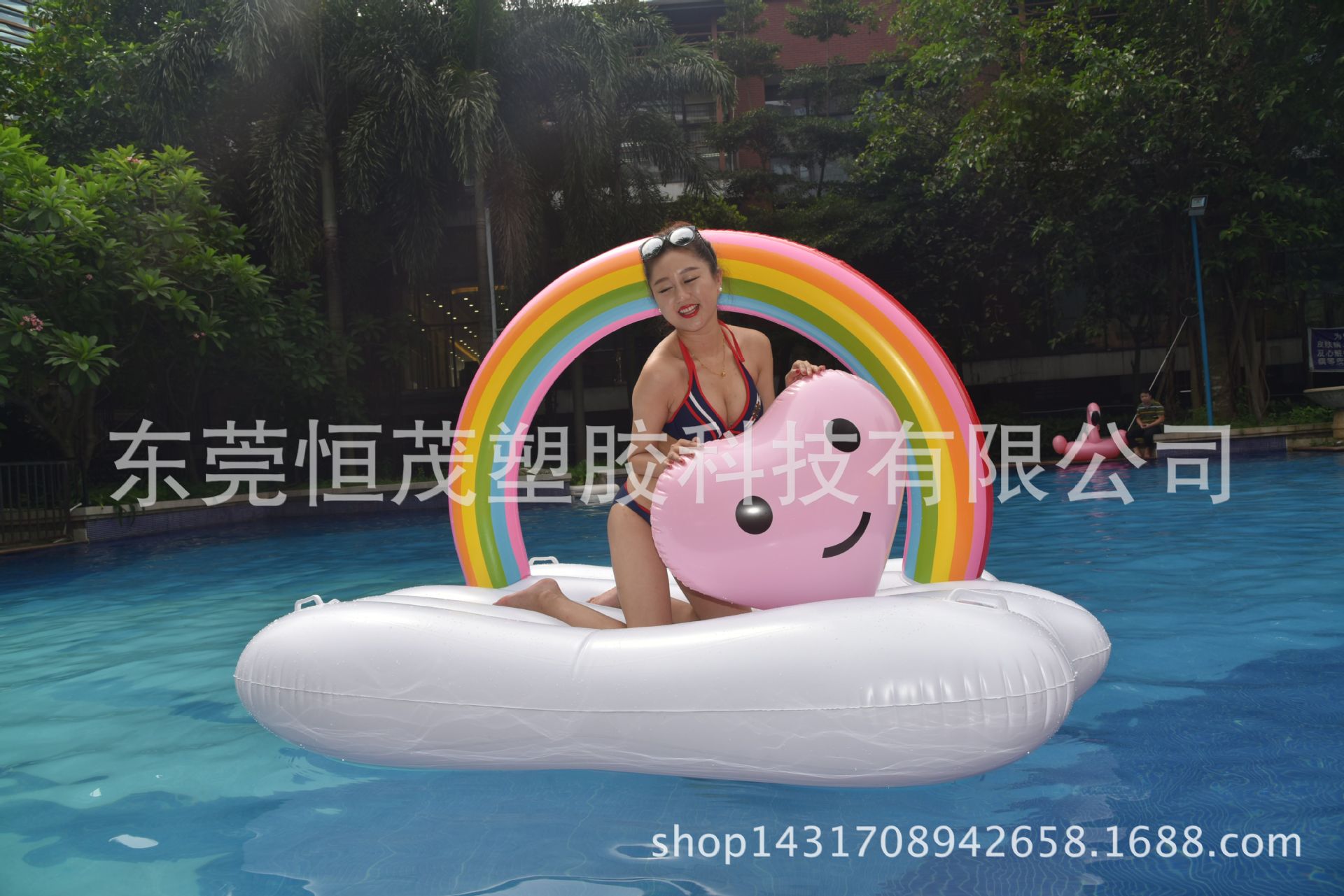 模特手上的爱心球玩具也有现货,可同时选购,水上娱乐 乐趣无穷