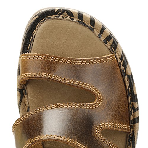 Studio : Fly London Publisher : Fly London Binding : Apparel Product Description TILY227FLY from Fly London is a fashion sandal like no other. Genuine, smooth, leather upper comes in jet black and has been adorned by two lines of the contrasting top stitching. Under the round, metallic buckle this ankle strap sandal hides the velcro type closure. Those summer wedges are not only easy to put on and to take off but also thanks to is lack on inner lining are wonderfully breathable. Gently cushioned leather insole secures all day comfort. Women's sandals sit on the rubberized soles which reach 1.5 inches at the heel. The well-defined, rubber grooves located on the outsole guarantee traction and longevity of this ankle strap summer shoe. 0