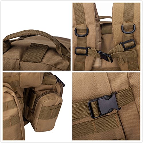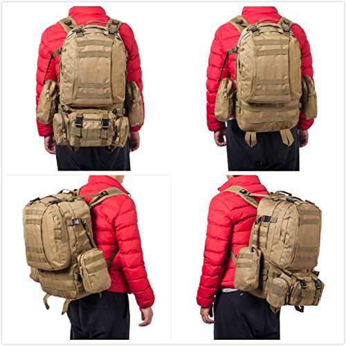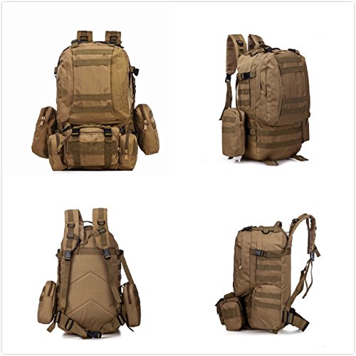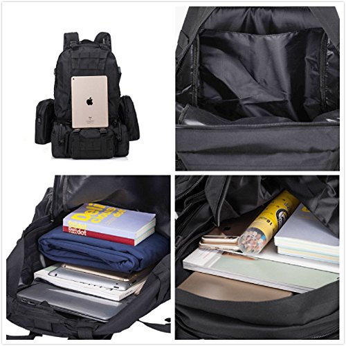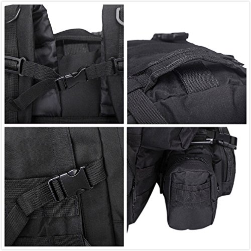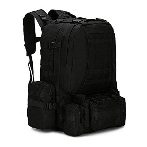 -. Feature : Dimension: 19.6x11.8x8.6 inch Weight: 3.52 lb, 50L volume / Material: 1000D oxford cloth, sturdy for long time use / Hydration bladder pocket fits any standard size reservoirs,two attached small bags and a waist bag, can be removed anytime / MOLLE extension design to combine with other equipment, all double zipper heads for convenience / Great for hiking, backpacking, mountaineering, cycling or traveling