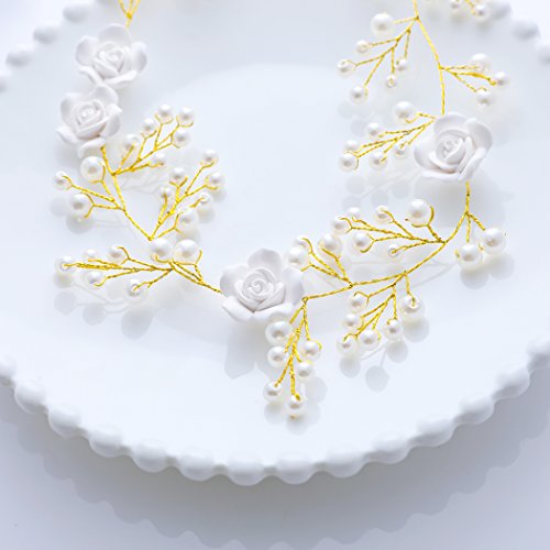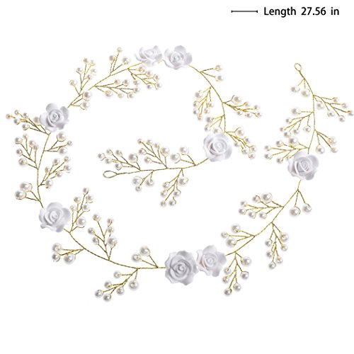 -. Title : Yean Wedding Hair Vine Headband White Flower Hair Band Boho Flower Bridal Hair Accessories for Bride and Bridesmaid