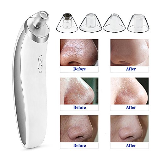 Features: ★Removes nose blackhead and acne. ★Exfoliates dead skin. ★V face and tightening. ★Increases skin elasticity. ★4pcs beauty head, multi-functional. Microcrystalline Head: Exfoliates dead skin, promotes blood circulation. Big Round Hole Head: Removes blackhead effectively. Small Round Hole Head: Makes the skin cleaner. Oval Hole Head: Increases skin elasticity, lifts and firms skin. Specifications: Voltage input: DC3.7V/50Hz Device working current: 200mA Battery capacity: 400mA Rated output: 0.74W Material: ABS PC Package Included: 1x Blackhead Cleanser 1x Microcrystalline Head 1x Big Round Hole Head 1x Small Round Hole Head 1x Oval Hole Head 1x USB Cord 3x Blackhead Extractor kit 1x User Manual How to Use: -Step 1: Use a hot steamer or hot towel on your face for 3-5 minutes to open up the pores. If the blackhead is deep please apply with blackhead educe liquid. -Step 2: According to your needs, choose the appropriate probe and install it. -Step 3: Press the power button and choose intensity level of suction. We recommend starting with Low Suction Level. -Step 4: Stroke the probe against the skin with smooth, even motions, making sure not to keeping or staying the probe on the skin for long time. Warm Tips: 1. Before using the blackhead instrument, a warm towel and derived lotion to help to open the pores and soften the skin. 2. Starting from lowest suction level, slowly increase the intensity of use, and move it slowly to suck out the blackhead in the appropriate intensity. 3. Please don't keep the device on the same part for long time, which may make the skin red. 4. Each treatment should be limited to within 5 minutes. Dry skin recommended 1 week 1 times, oily mixed skin can be used 2 times. 0 |