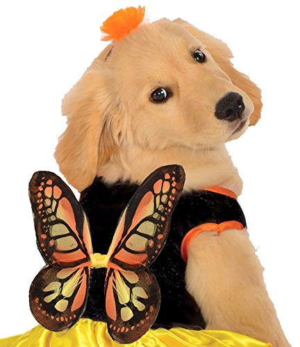 -. Binding : Misc. -. Brand : Rubie's -. Color : Black / Orange / Yellow -. Feature : Brand new Officially Licensed Adorable Standard Butterfly costume / dogs Size , approx Small (11" Neck-Tail) to XL (30" Neck-Tail). All measurements provided by Rubies and are approximate. / This posting includes: Butterfly dress and wings as featured / Please note that only the items listed above are included -. Label : Rubies Costume Co -. Manufacturer : Rubies Costume Co -. MPN : RC887834 -. NumberOfItems : 1 -. PackageQuantity : 1 -. PartNumber : RC887834 -. ProductGroup : Pet Products -. ProductTypeName : PET_SUPPLIES -. Publisher : Rubies Costume Co -. Studio : Rubies Costume Co -. Title : Deluxe Beautiful Butterfly Monarch Butterfly Pet Dog Costumes