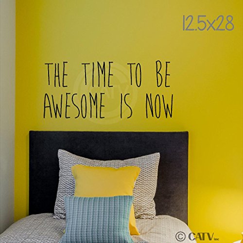 The Time to Be Awesome Is Now (M) wall saying vinyl lettering home decor decal stickers quotes (Black, 12.5x28)