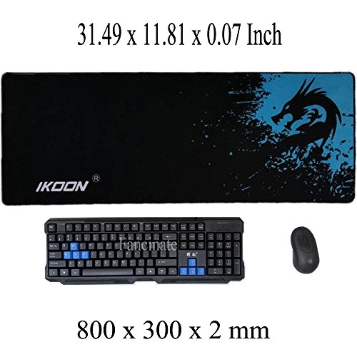 Dimension: 800 x 300 x 2mm(31.49"x11.81"x0.07") Extended Mousepad Weight: around 403g (Thin pad, fits both keyboard and mouse well for gaming AND fits pc and mouse well for office official use)