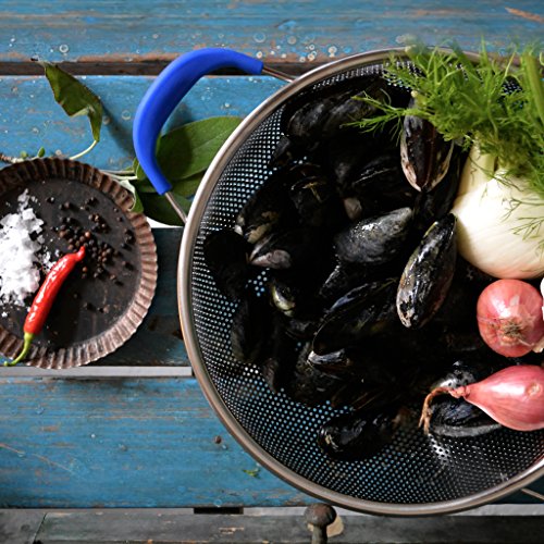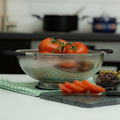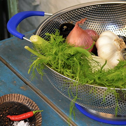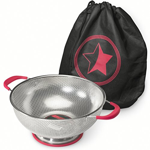 -. Feature : ★FDA APPROVED FOR SAFE USE - The strainer bowl, handle and ring base custom cover designs are made of premium quality laboratory tested stainless-steel 18/10 and silicone materials that meet our very high standards. Rest assured when cooking in a domestic or commercial environment. / ★SUITABLE FOR ALL YOUR NEEDS - Large & study sieve w/ micro-perforated extra-close, extra-small holes drain water quickly while preventing fall through. It features heat resistant non-slip non toxic soft-grip arms & soft bottom ring base cover for stability. Best drainer basket for washing / rinsing pasta, vegetables, fruits and works w/ many cooked seeds & grains or as a steamer in a larger pot. / ★HUGE TIME SAVER WITH A TWIST- Dishwasher safe and a breeze to clean by hand over the sink due to our exclusive & sophisticated mirror polishing treatment for a perfect finishing. Removable silicone ring base cover to ensure not even the smallest particles of food or dirt are stuck on the elevated base - and allows for different configuration choices based on your needs. / ★FREE GIFT & LIFETIME WARRANTY - The eco friendly string bag is a perfect protection for storage when going out camping, cooking outdoors or if you don't use colanders on a daily basis. It also works great as a nice packaging to give as a present in housewarming parties, weddings, birthdays or other special occasion. Lifetime warranty & 90 days money back guarantee. / ★NEWLY IMPROVED PROFESSIONAL DESIGN - Tailored to fulfil our customers preferences and exceed their expectations - top of the line kitchen strainers available in 4 beautiful colors from June 2016 with 50% OFF for a limited time. Grab yours NOW before they are gone!
