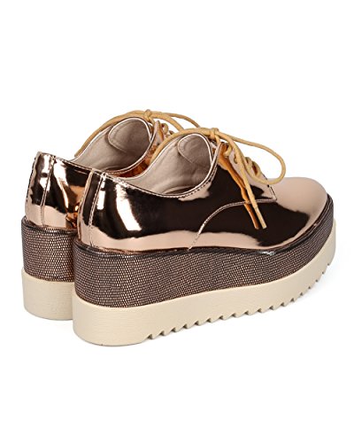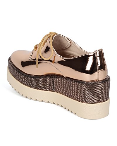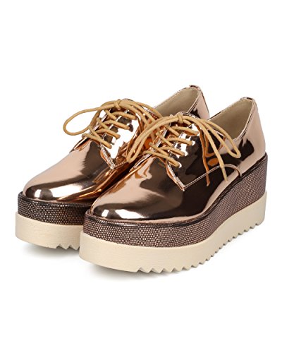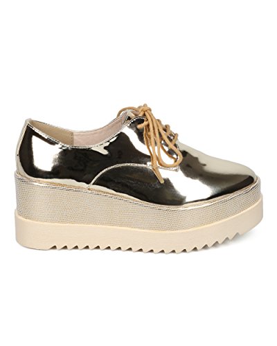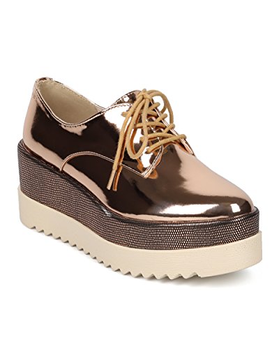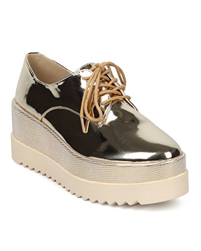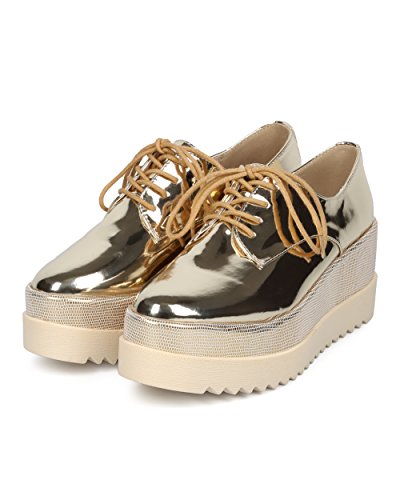 Women Double Stacked Spectator Creeper - Pointy Toe Oxford Platform - Double Platform Metallic ...