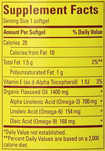 -. Binding : Health and Beauty -. Brand : Nature Made -. EAN : 0031604028251 -. Feature : May support cardiovascular health / Nature made flaxseed oil is a great plant based source of omega-3s for individuals / Nature made flaxseed oil is from a certified organic source -. IsAdultProduct : 0 -. Label : Nature Made -. Manufacturer : Nature Made -. Model : 2825 -. MPN : 2825 -. NumberOfItems : 1 -. PackageQuantity : 1 -. PartNumber : 2825 -. ProductGroup : Health and Beauty -. ProductTypeName : HEALTH_PERSONAL_CARE -. PublicationDate : 2012-07-27 -. Publisher : Nature Made -. Size : 100 -. Studio : Nature Made -. Title : Nature Made Organic Flaxseed Oil 1400 mg 700mg Omega 3 100 Liquid Softgels -. UPC : 031604028251