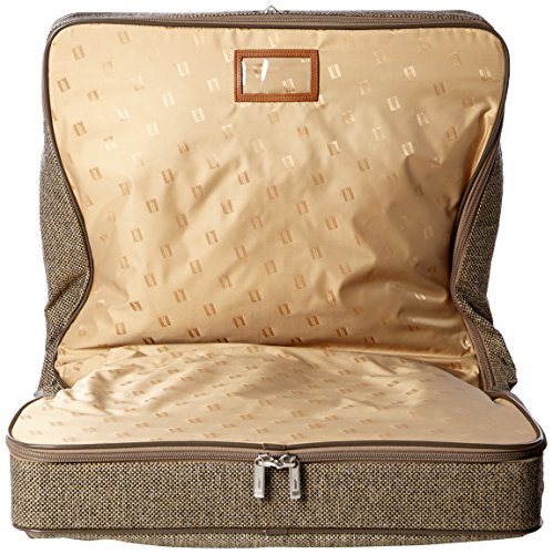 -. Feature : Leather trimmed carry straps, leather telescoping handle grip, heritage hartmann details. Dual mounted spinner wheels. Companion bag sleeve / Tsa lock or padlock with leather key fob. Protective bumpers. Dust bag or travel cover. 100% nylon tweed and full grain leather / Leather accented organization, technology pockets, zippered packing compartment / Protective lined travel pouch. Mesh garment hanger, cross straps, polyester twill jacquard lining / 20.75x23x7.5